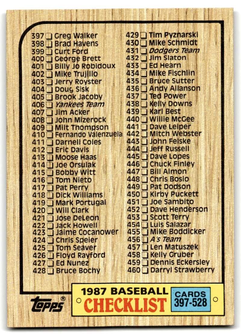 Amazon Com 1987 Topps 522 Checklist 397 528 Collectibles Fine Art